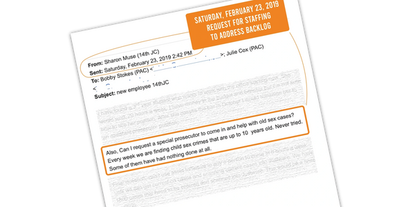"Also, Can I request a special prosecutor to come in and help with old sex cases? Every week we are finding child sex crimes that are up to 10 years old. Never tried. Some of them have had nothing done at all."